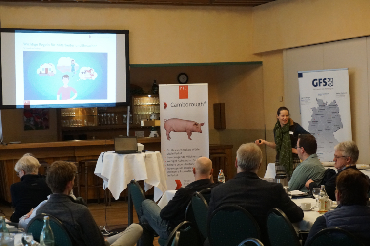 Der zweite Themenblock war dann ganz dem Thema Gesundheit mit Schwerpunkt ASP gewidmet. Denise Wüllner vom PIC-Veterinär-Team, schärfte bei den Zuhörern das Bewusstsein für eine umfassende Biosicherheit, gespickt mit praktischen Beispiele und verdeutlicht auch durch die Hinweise auf Überlebensfähigkeiten pathogener Keime: “Wer seine Biosicherheitsmaßnahmen so im Griff hat und so konsequent lebt, dass er seinen Betrieb vor dem PRRS-Virus schützen kann, der hat auch sehr gute Chancen, sich vor anderen Erregern erfolgreich zu schützen. Denn das PRRS-Virus gehört mit zu den überlebensfähigsten und recht leicht zu übertragenden Erregern.” Zum Abschluss gab Dr. Hendrik Nienhoff vom Schweinegesundheitsdienst ein aktuelles Update zur Verbreitung der Afrikanischen Schweinepest, angelaufener Schutzmaßnahmen sowie den erforderlichen Maßnahmen im Seuchenfall.