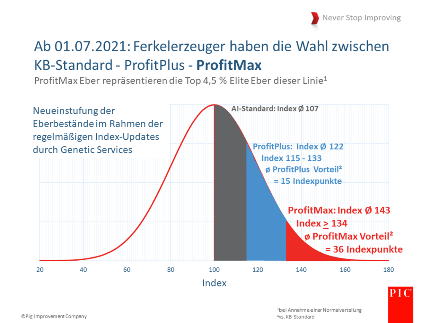 Vor rund zehn Jahren hat PIC das erste Mehrwerteber-Programm auf dem deutschen Markt eingeführt, das 2014 aktualisiert wurde und seitdem unter dem Namen PICProfitPlus etabliert ist. Der PIC-Index reflektiert das genetische Potential eines PIC-Endstufenebers.